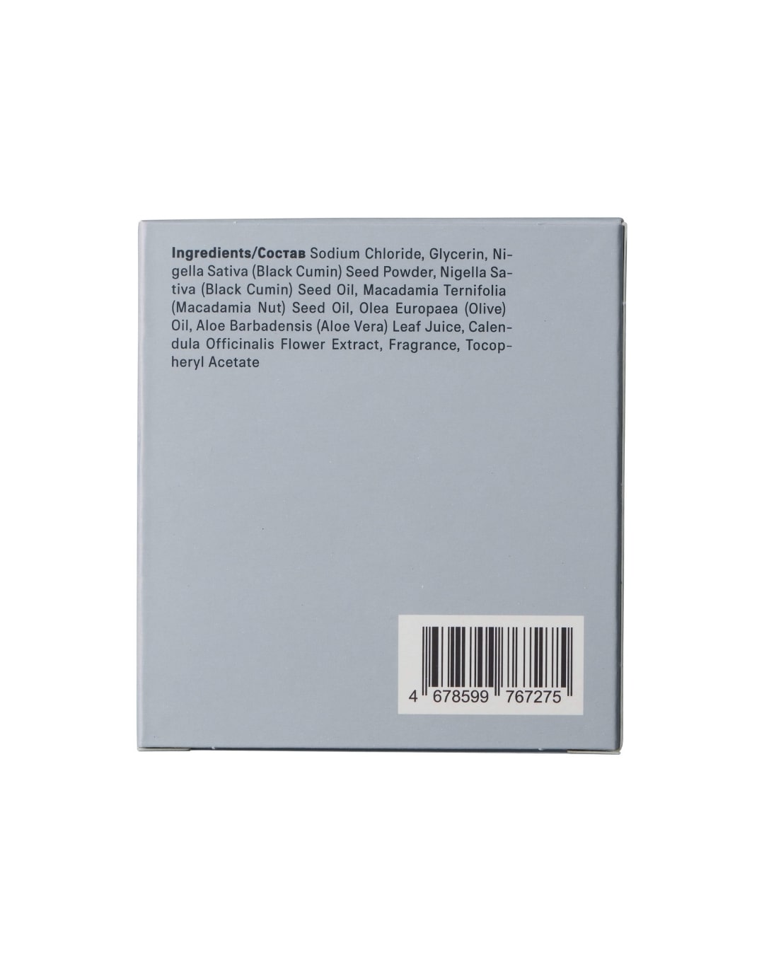 Salt, Glycerin, Black Seed Flour, Black Seed Oil, Macadamia Oil, Olive Oil, Aloe Vera Gel, Fragrance, Vitamin E