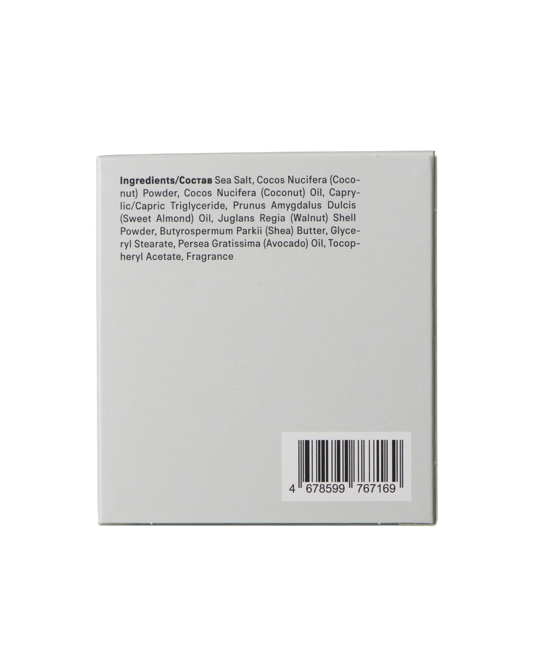 Sea Salt, Coconut Flour, Coconut Oil, Caprylic/Capric Triglyceride, Sweet Almond Oil, Walnut Shell Abrasive, Shea Butter, Glyceryl Stearate, Avocado Oil, Vitamin E, Fragrance