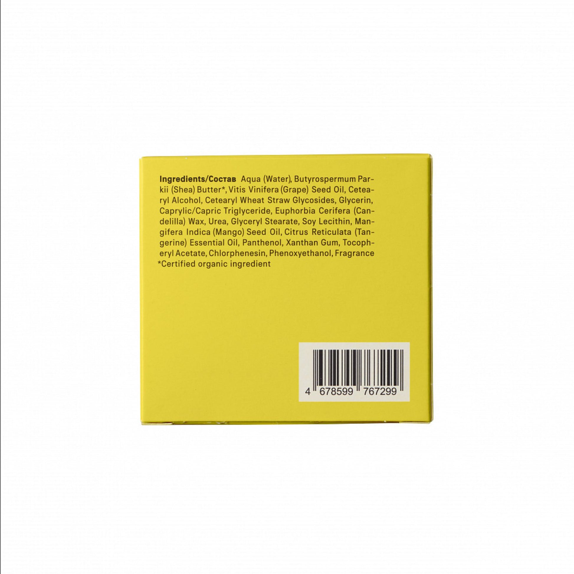 Water, Shea Butter, Grape Seed Oil, Cetearyl Alcohol, Wheat Emulsifying Wax, Glycerin, Caprylic/Capric Triglycerides, Candelilla Wax, Urea, Glyceryl Stearate, Soy Lecithin, Mango Seed Oil, Tangerine Essential Oil, Panthenol, Xanthan Gum, Tocopheryl Acetate, Chlorphenesin, Phenoxyethanol, Fragrance