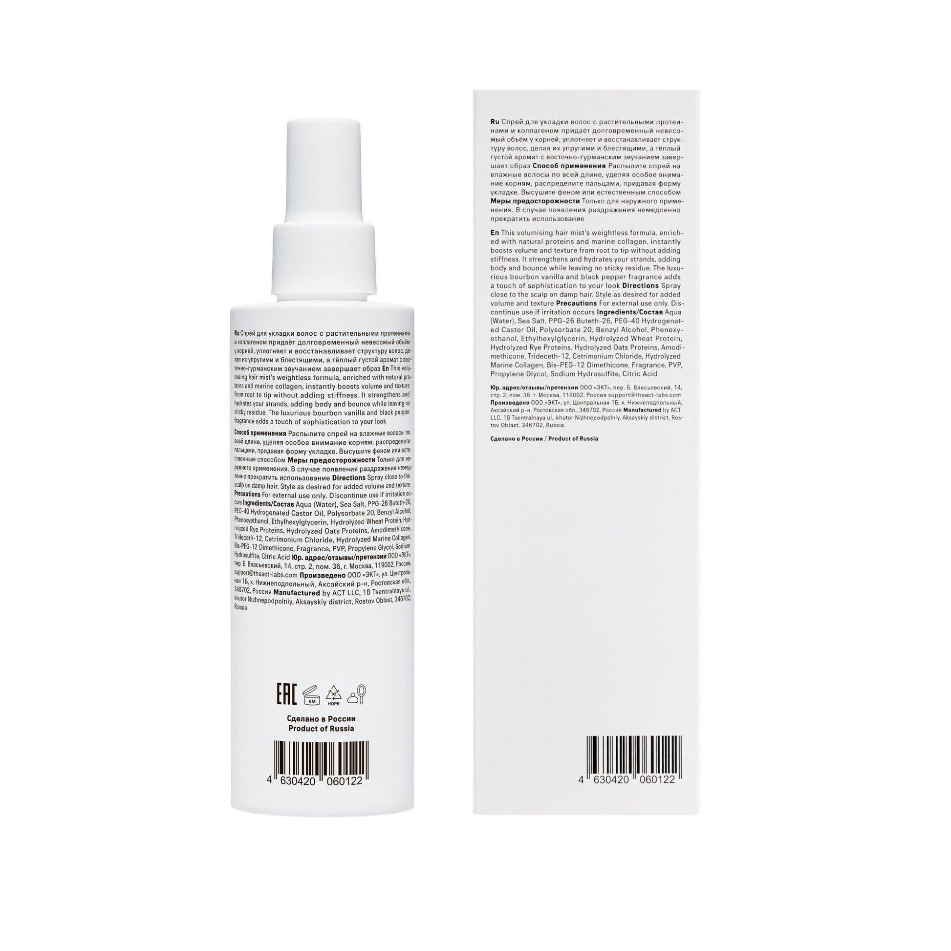 The Act STYLE volumizing spray with plant proteins and collagen adds lightweight yet long-lasting root volume, making hair appear thicker and fuller. It strengthens the hair structure, increases elasticity, adds shine, and protects hair during styling.