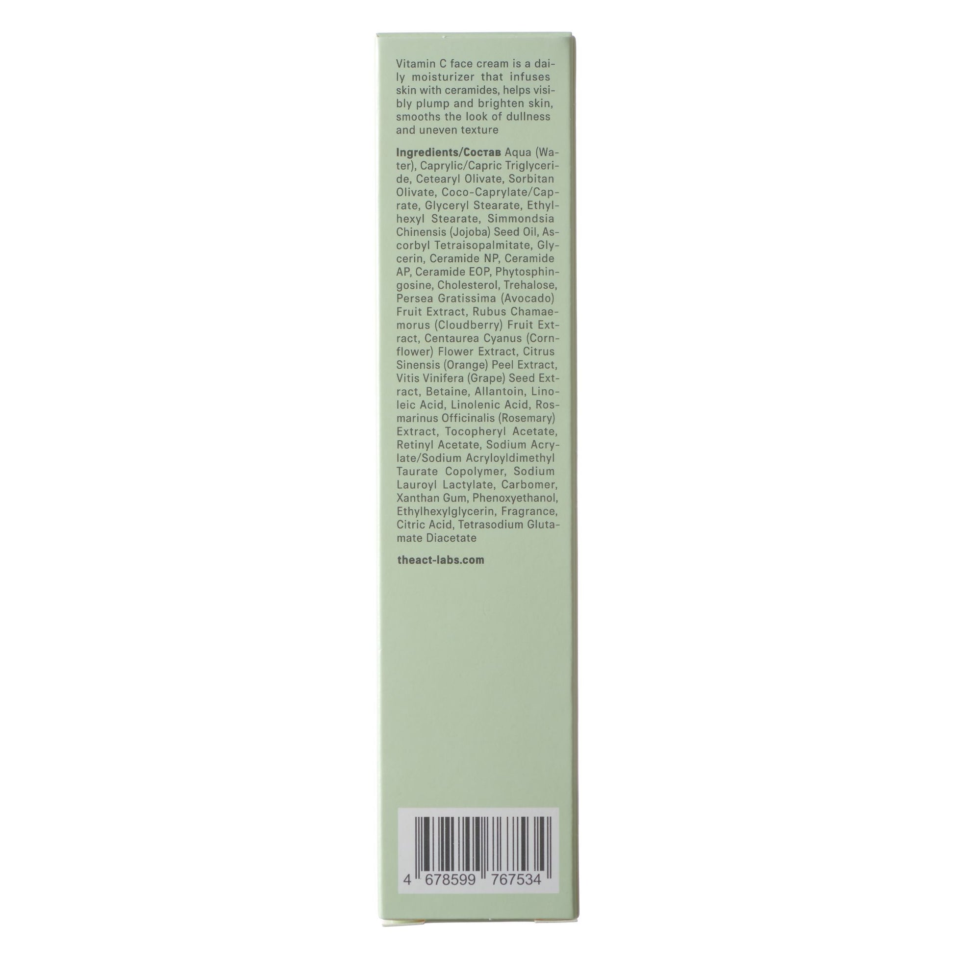 Water, Caprylic/Capric Triglycerides, Cetearyl Olivate, Sorbitan Olivate, Coco-Caprylate/Caprate, Glyceryl Stearate, Ethylhexyl Stearate, Glycerin, Ceramide AP, Ceramide EOP, Phytosphingosine, Cholesterol, Trehalose, Linoleic Acid, Linolenic Acid, Tocopheryl Acetate, Retinyl Acetate, Simmondsia Chinensis (Jojoba) Seed Oil, Ascorbyl Tetraisopalmitate, Persea Gratissima (Avocado) Fruit Extract, Cloudberry Extract, Sorbus (Rabbit) Fruit Extract, Cornflower Extract, Orange Fruit Extract, Grape Seed Extract, Betaine, Allantoin, Sodium Acrylate/Sodium Acryloyldimethyl Taurate Copolymer, Sodium Lauroyl Lactylate, Carbomer, Xanthan Gum, Phenoxyethanol, Ethylhexylglycerin, Fragrance, Citric Acid, Chlorphenesin, Tetrasodium Glutamate Diacetate