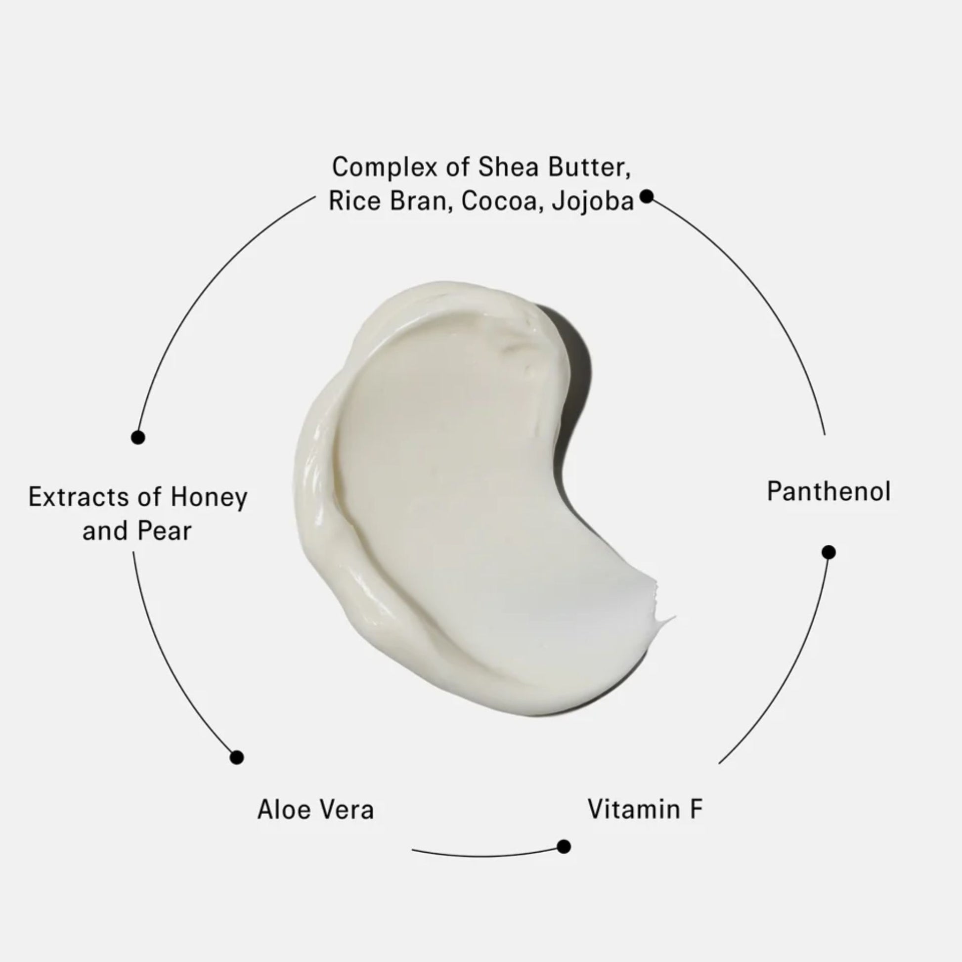 Water, Butyrospermum Parkii (Shea Butter), Caprylic/Capric Triglyceride, Cetearyl Alcohol, Coco-Caprylate/Caprate, Linoleic Acid, Linolenic Acid, Glycerin, Glyceryl Stearate Citrate, Glyceryl Stearate, Rice Bran Wax, Sodium Acrylates Copolymer, Lecithin, Biosaccharide Gum, Ethylhexylglycerin, Phenoxyethanol, Benzyl Alcohol, Honey Extract, Rice Bran Oil, Simmondsia Chinensis (Jojoba) Seed Oil, Theobroma Cacao (Cocoa) Seed Butter, Prunus Arvensis Leaf Extract, Aloe Barbadensis Leaf Extract, Panthenol, Allantoin, Tocopheryl Acetate, Xanthan Gum, Tetrasodium Glutamate Diacetate, Fragrance, Citric Acid